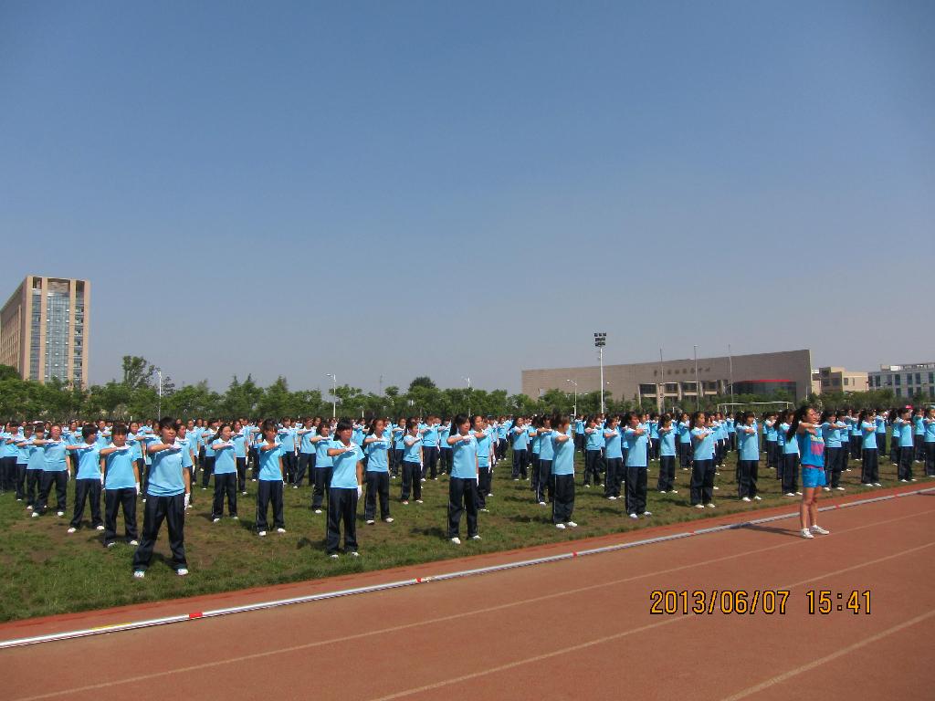 为丰富公司员工文化生活,增强员工健康体质,2013年6月7日下午,公司举办了第九套广播体操比赛。公司副书记祝北京、副经理张秦伟、教务处处长郭俊炜、员工处副处长杨进及各系党总支书记出席并观看了此次比赛。