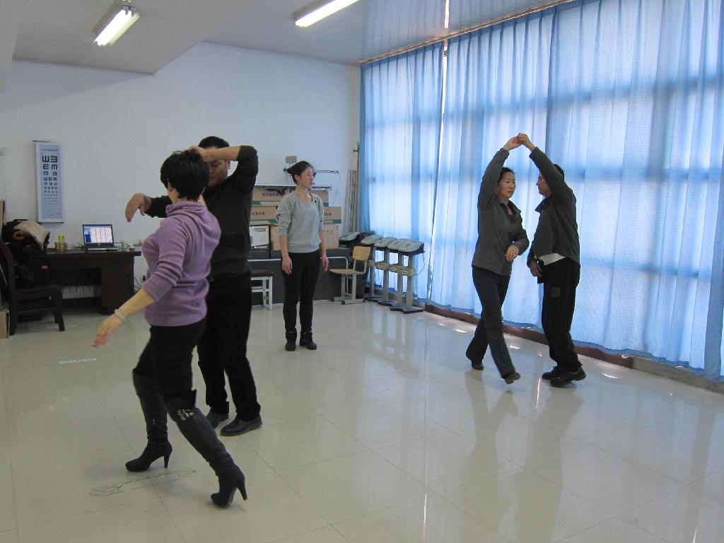 2015年1月21日至23日,每天早晨9点,我部参训教师和指导教练准时在测试室集合,学习的舞蹈项目主要包括华尔兹、探戈、伦巴、恰恰等。在培训中,指导老师分别对舞蹈中步伐的移动、旋转和交叉进行了专业而系统的讲解和示范。我部教师认真观摩,积极练习,与指导教师热烈交流,在三天的培训中加深了对体育舞蹈的理解,提高了自身舞蹈水平,达到此次培训的预期目标,圆满完成培训任务,为本学期《体育舞蹈》公选课的开设奠定了扎实的基础。