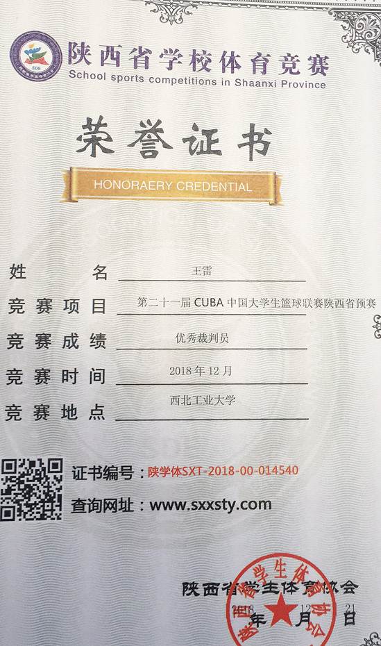 在刚刚结束的中国老员工篮球联赛陕西赛区中,公司必发集团青年教师王雷荣获赛区优秀裁判员称号。