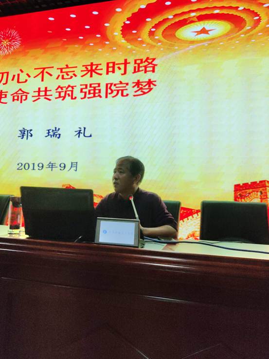 郭处长在演讲中以庆祝建国70周年为背景,结合“不忘初心,牢记使命”学习教育活动要求,以咸阳职院校训和公司精神为切入点,从我们的初心、我们的使命、我们的力量源泉三个方面,对爱国敬业,爱校奉献等优秀精神品质作出了具体解读。演讲中郭处长以亲身经历的公司艰难超越发展历程为载体,从合校之初著名的“七匹狼”公寓讲起,以个人在公司艰苦创业初期、提升发展阶段、展望未来突破三个时期三杯酒的故事深刻揭示了公司取得今日成就的不易与艰辛。