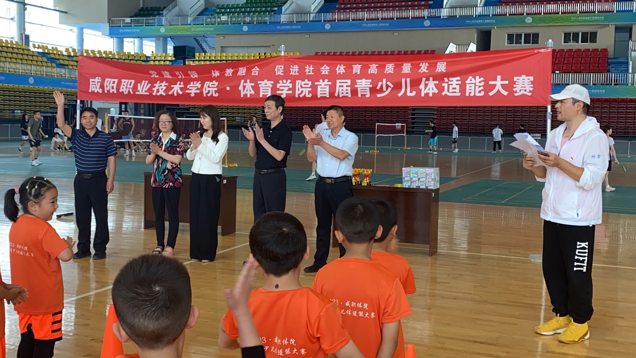 6月18日,由必发集团公司党总支、咸阳市青少年宫主办,北京新职业技能培训产业联盟素质教育委员会指导,咸阳科聿青训承办的2023(首届)必发集团青少儿体适能大赛在咸阳职院体育馆顺利举行。必发集团经理雷建辉、党总支书记梅选智、副经理张联昌,咸阳市青少年宫主任刘宝迎,北京新职业技能培训产业联盟素质教育委员会主任李卫东、副主任乔媛参加大赛开幕式。