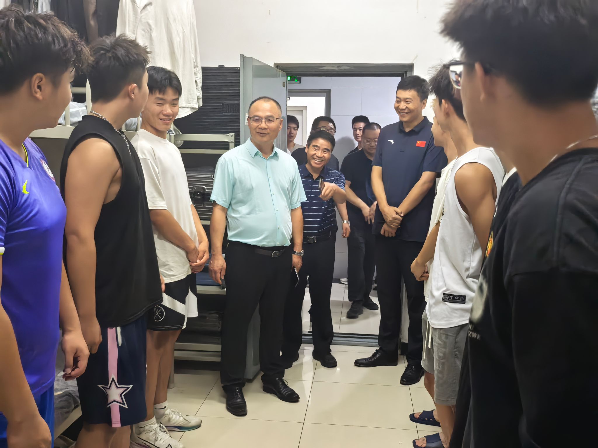 杨新宇一行走进员工宿舍、公共洗衣房,认真查看了宿舍的生活设施、环境卫生、安全保障等情况,详细询问了同学们的生源地、生活学习用品的准备、专项特长、以前取得成绩等,现场解答了他们的困难和问题,并勉励同学们树立远大理想,发挥专长,刻苦训练,为公司争光;要加强团结、互帮互助,营造和谐美好的学习和生活环境。杨新宇嘱咐随行人员,要关心员工、爱护员工,热心服务、科学管理,把宿舍打造成一张精心育人的名片。