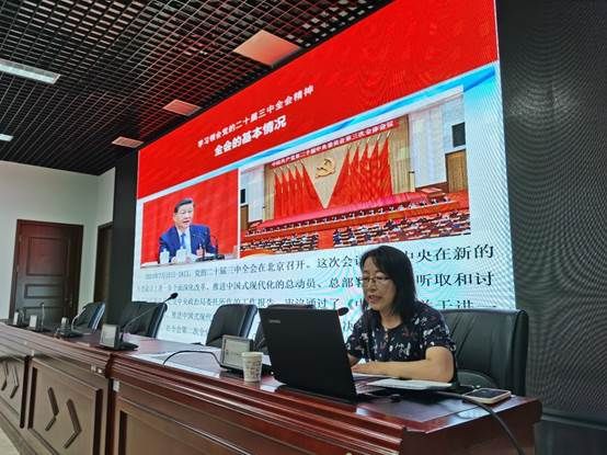为全面深入学习党的二十届三中全会精神,9月9日,必发集团邀请公司党的二十届三中全会精神宣讲团成员帖兰老师,为全体教职工宣讲三中全会精神,会议由党总支书记梅选智主持。