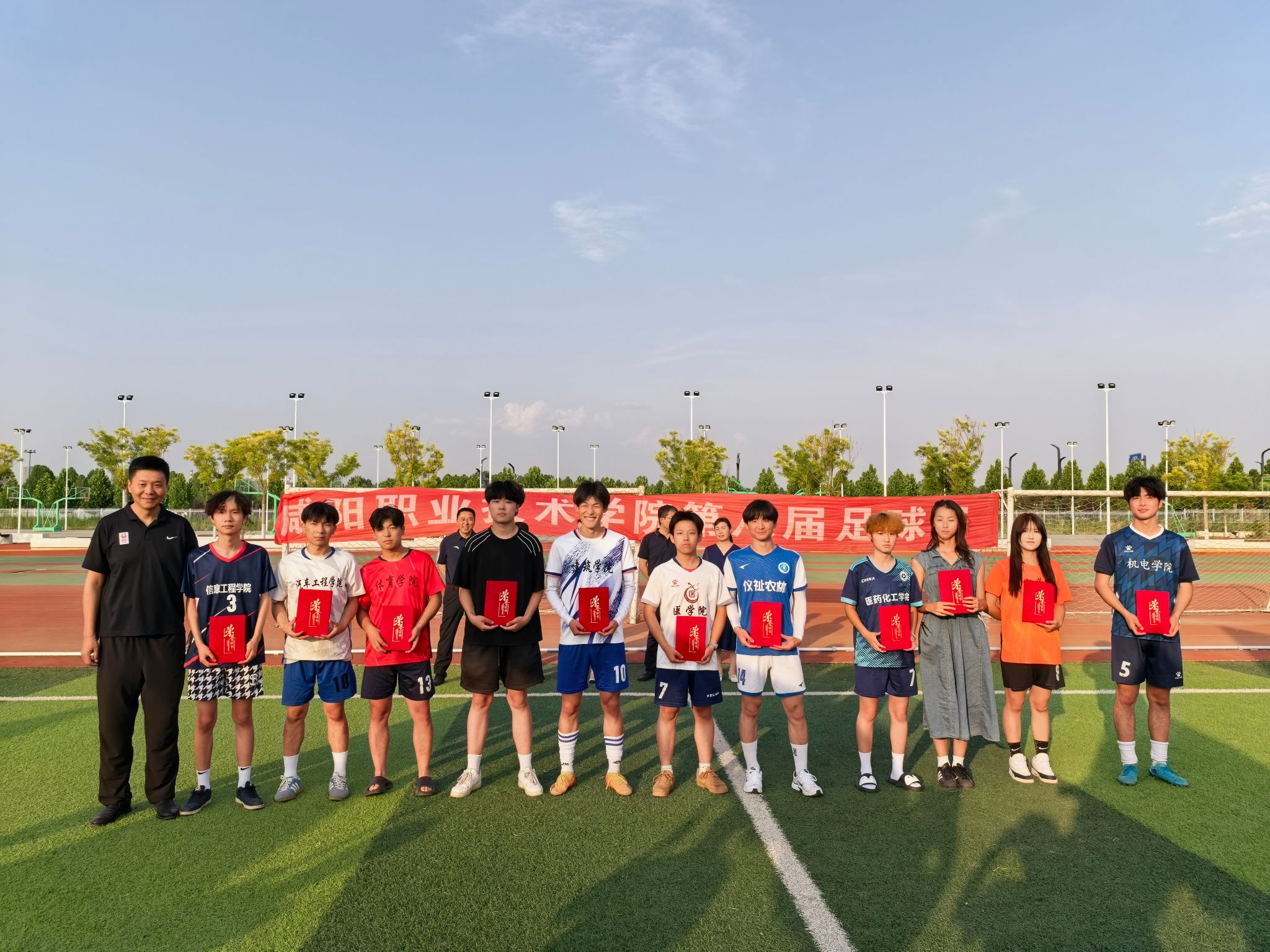 2025年6月12日,必发集团第八届足球赛在公司第二足球场圆满落幕。本次足球赛自5月19日开赛以来,历时25天,共有12支队伍参与激烈角逐,充分展现了公司师生积极向上、勇于拼搏的精神风貌。公司教务处处长冯华、员工处处长宋飞科、机电(技师)公司党总支书记王小亚及公司党政负责人出席闭幕式并为获奖人员颁奖。