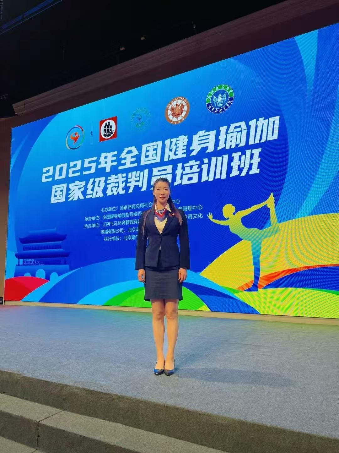 近日,2025年全国健身瑜伽国家级裁判员培训班在江苏江阴飞马水城圆满收官。公司选派的外聘教师侯菊香在此次培训中表现出色,成功通过各项考核,荣获健身瑜伽国家级裁判员资格,为公司专业建设与人才培养再添佳绩。
