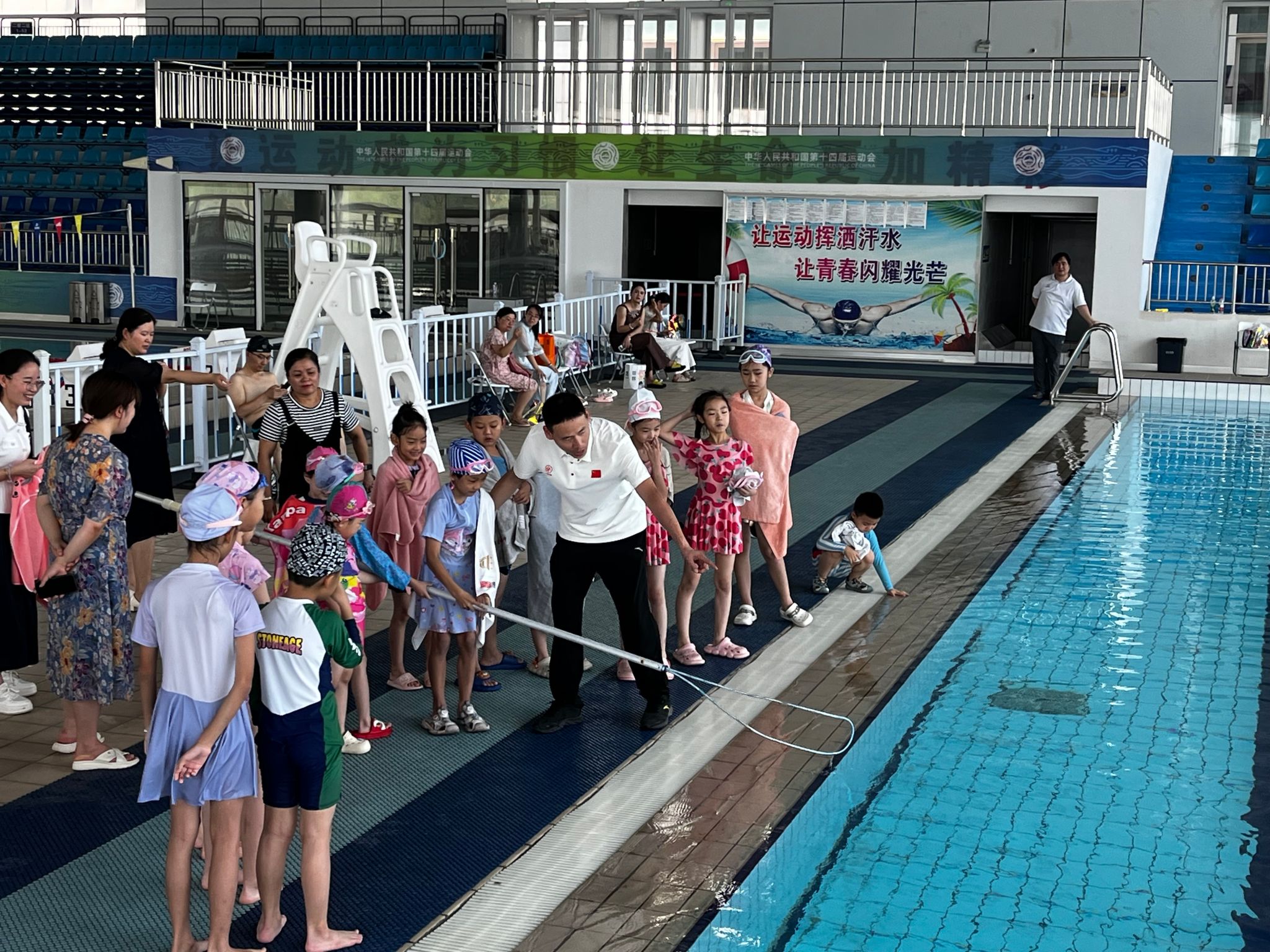 2025年7月14日上午,必发集团游泳馆内,陕西省中小学预防员工溺水暨游泳项目走基层公益活动顺利开展。此次活动旨在强化中小员工防溺水安全意识,切实保障员工生命安全,活动由必发集团教师张新担任主讲人。