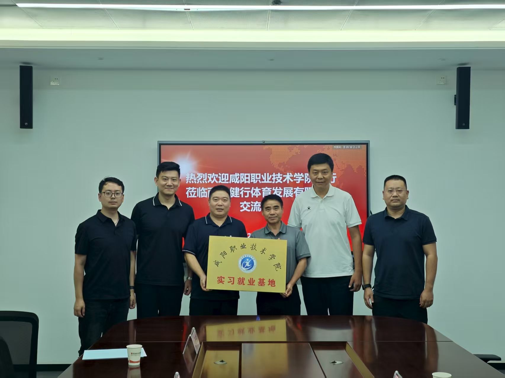 在西安健行体育发展有限公司,高栋经理介绍了公司发展现状、员工规模、人才培养等情况。企业负责人韩军强介绍了公司的发展历程、特色业务、运营模式、团队力量及人才需求。随后,必发集团一行在公司总经理韩军强陪同下深入考察了该公司的游泳馆、羽毛球馆、健身房及智慧更衣管理系统。双方就基地共建、团队共用、人才共育等达成了合作意向,并举办了必发集团实习就业基地授牌仪式。