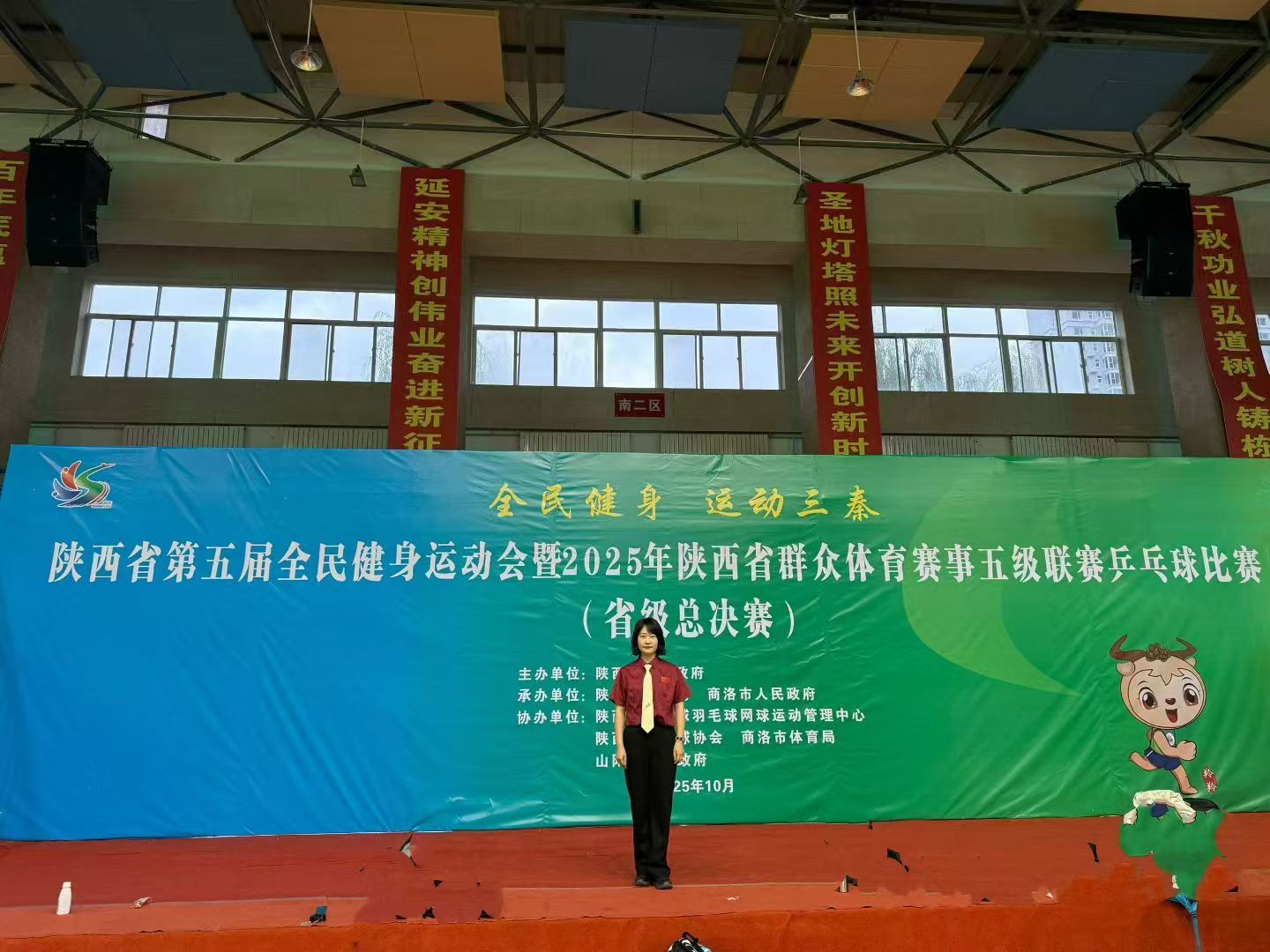 10月10日至12日,陕西省第五届全民健身运动会乒乓球比赛在山阳县开赛,必发集团体育教师张天羽受邀担任赛事裁判,以专业素养保障赛事公平公正进行 。