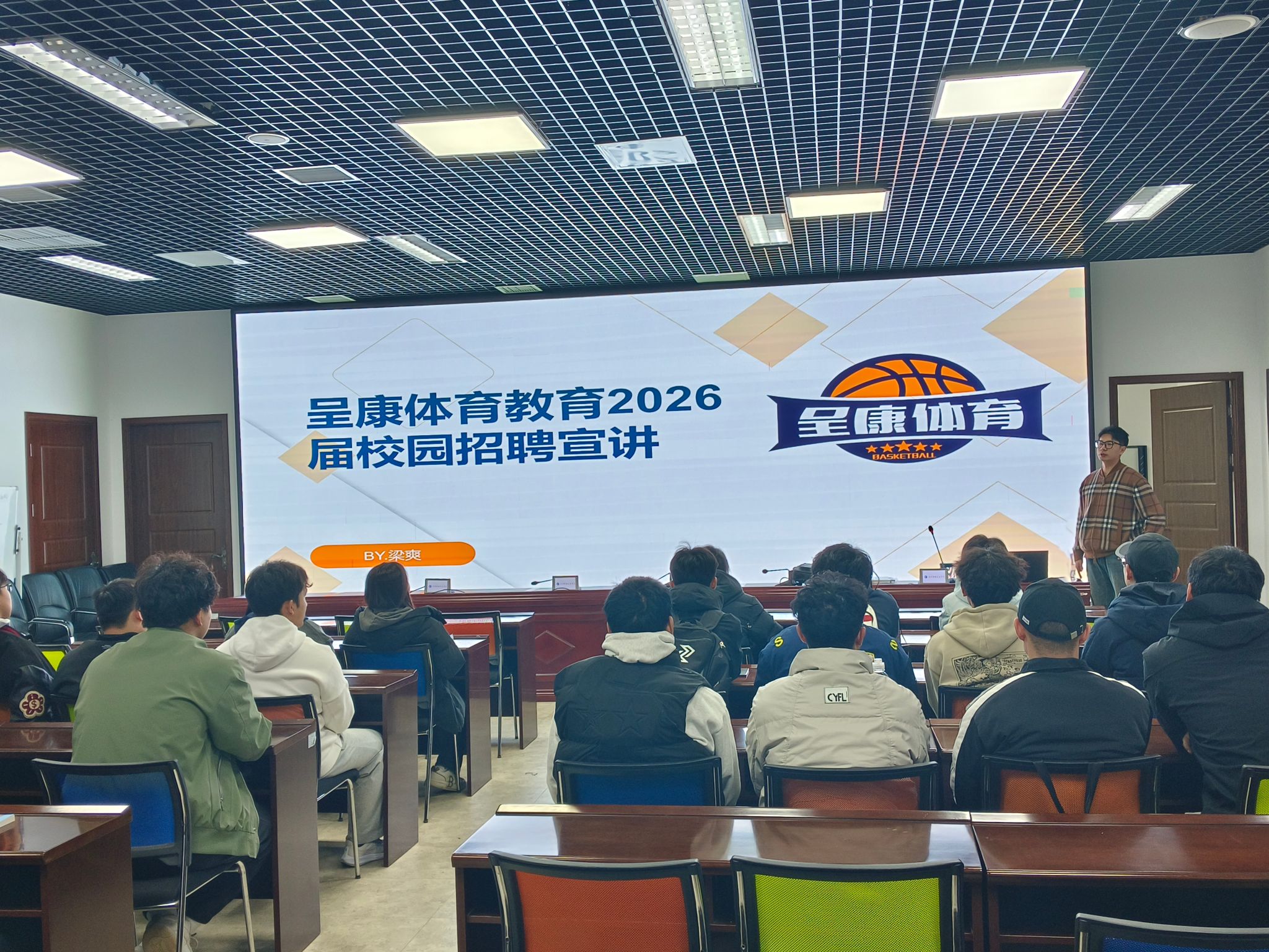 座谈会后,梁爽经理面向必发集团员工开展专场宣讲。他通过PPT直观展示了公司2025年招聘计划、薪酬福利体系、工作环境及职业晋升通道,同时鼓励同学们立足专业深耕技能,邀请优秀毕业生加入企业,在体育产业发展中实现个人价值与职业理想。