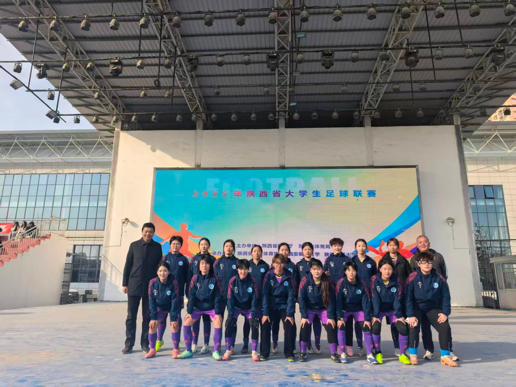 终场哨响,4:0的比分不仅是队员们当下拼搏的成果,更彰显了咸阳职院在女子足球项目上的持续实力。赛后,领队高栋、教练王晖与全体运动员 一同在赛场计分屏前合影,定格这份属于团队的荣誉。